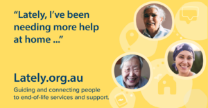 Lately is a website that provides information, options and education about end-of-life support. It is designed to ease communication and planning for people who have received a terminal diagnosis, and for those who love and care for them. It was developed by North Western Melbourne Primary Health Network (NWMPHN), with the support of the Australian Government.