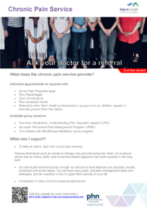 North Western Melbourne Primary Health Network (NWMPHN) has extended funding of the free, evidence-based, multi-disciplinary Chronic Pain Service at Merri Community Health until June 2024.