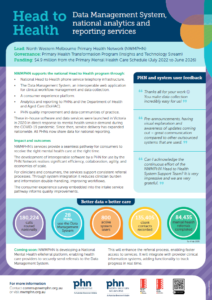 More than 500 staff at 25 PHNs also use the Medicare Mental Health Data Management System for an efficient clinical assessment and referral workflow.