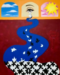 ‘We too, find strength in being vulnerable’ The artwork titled ‘We too, find strength in being vulnerable’ explores the different ways in which we express sorrow, anxiety, anger, love, and joy through our tears. Through vulnerability and the release of our emotions, we are able to reflect on the past and unlock a path to a future where we better understand ourselves and our strength. It’s a puzzle to solve.