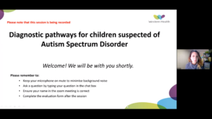 This webinar provides an overview of diagnostic pathways available to children suspected of having autism spectrum disorder. Specific focus was placed on Melton Health’s multidisciplinary autism assessment program and how this can be accessed.