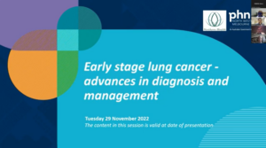 This session aims to enhance the knowledge base of general practitioners regarding recent advances in detection, diagnosis and management of early stage lung cancer. This will be discussed in the context of the local environment and services available at Northern Health.