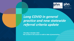 New statewide referral criteria for advice on the management of long COVID came into effect on 1 July 2023. This session will provide an update of the criteria. It will also help to increase participants’ understanding of long COVID and how best to support patients.
