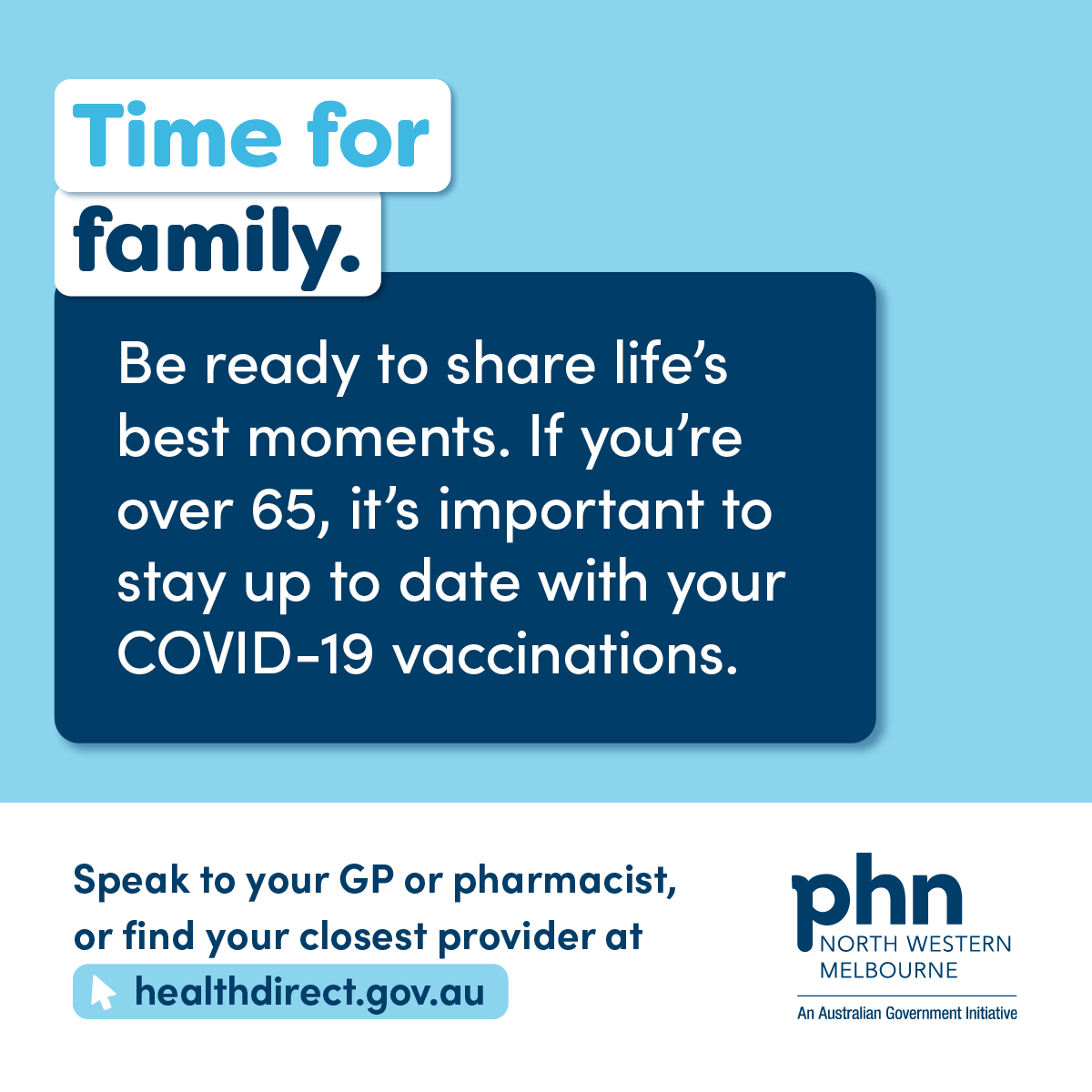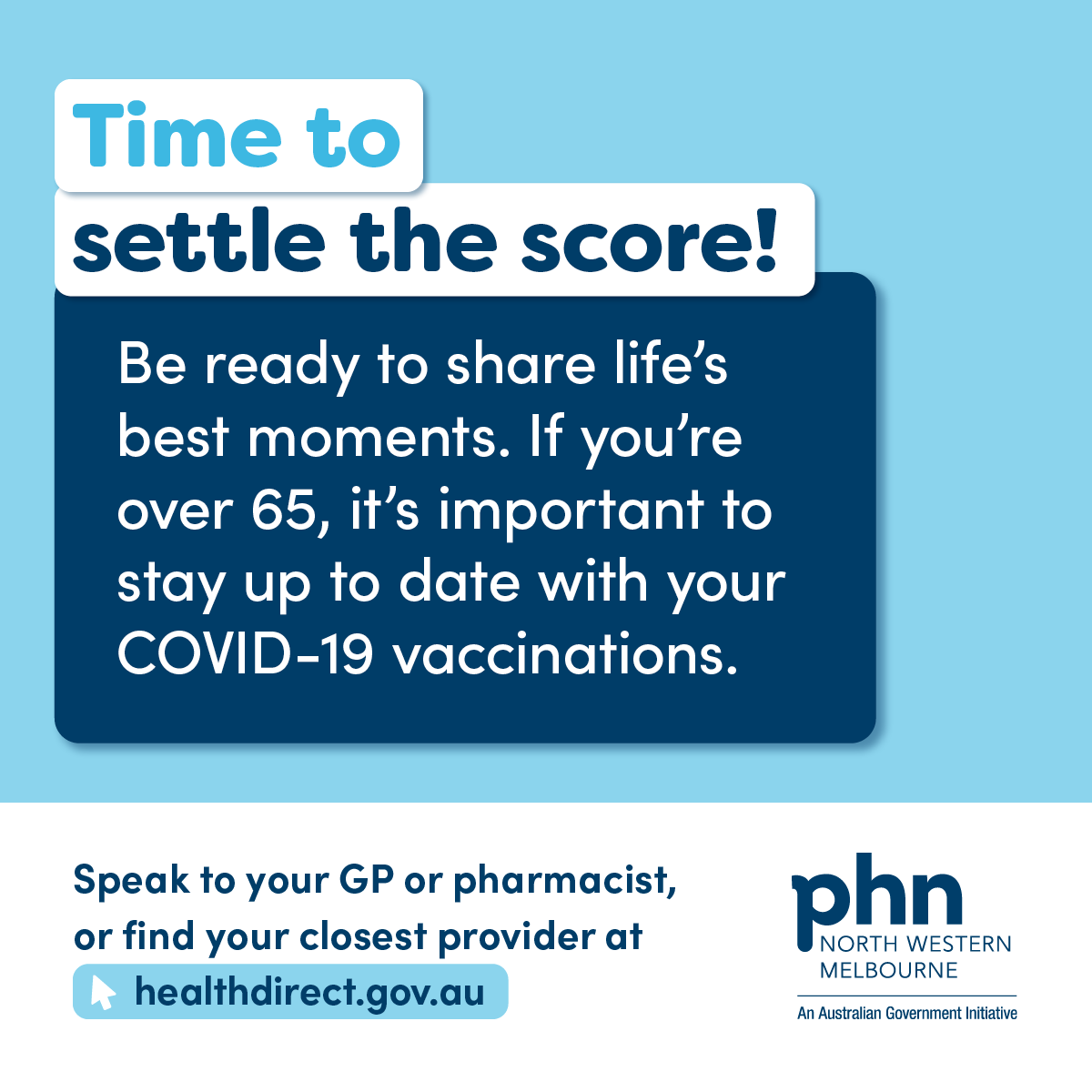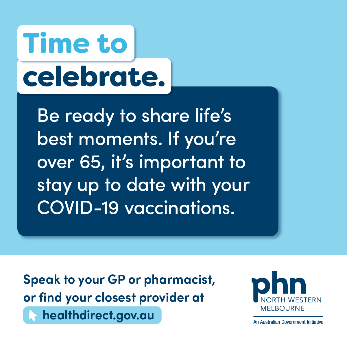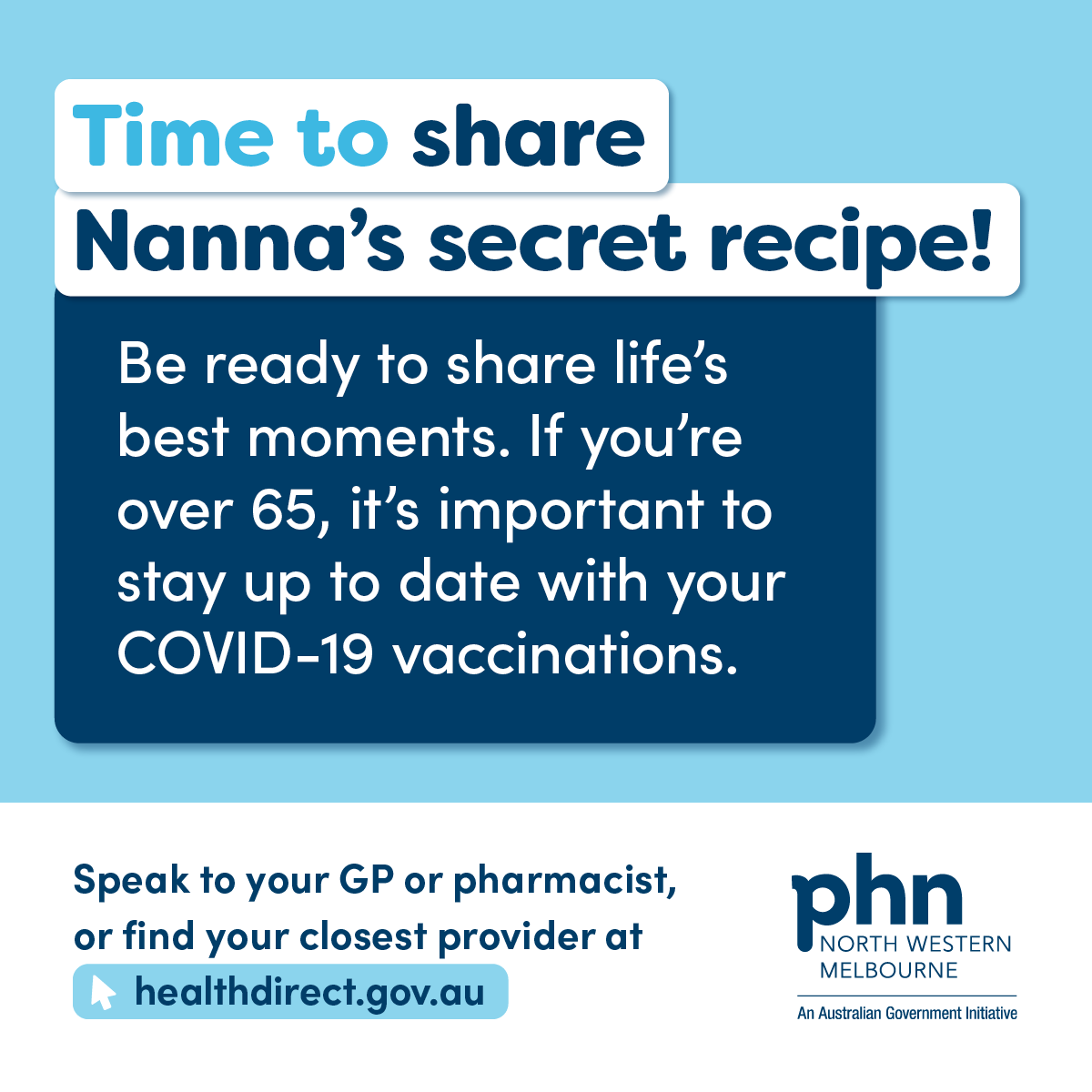 Stakeholders throughout the NWMPHN catchment are encouraged to download and share the assets below, which are aimed at increasing awareness among people 65 and over.