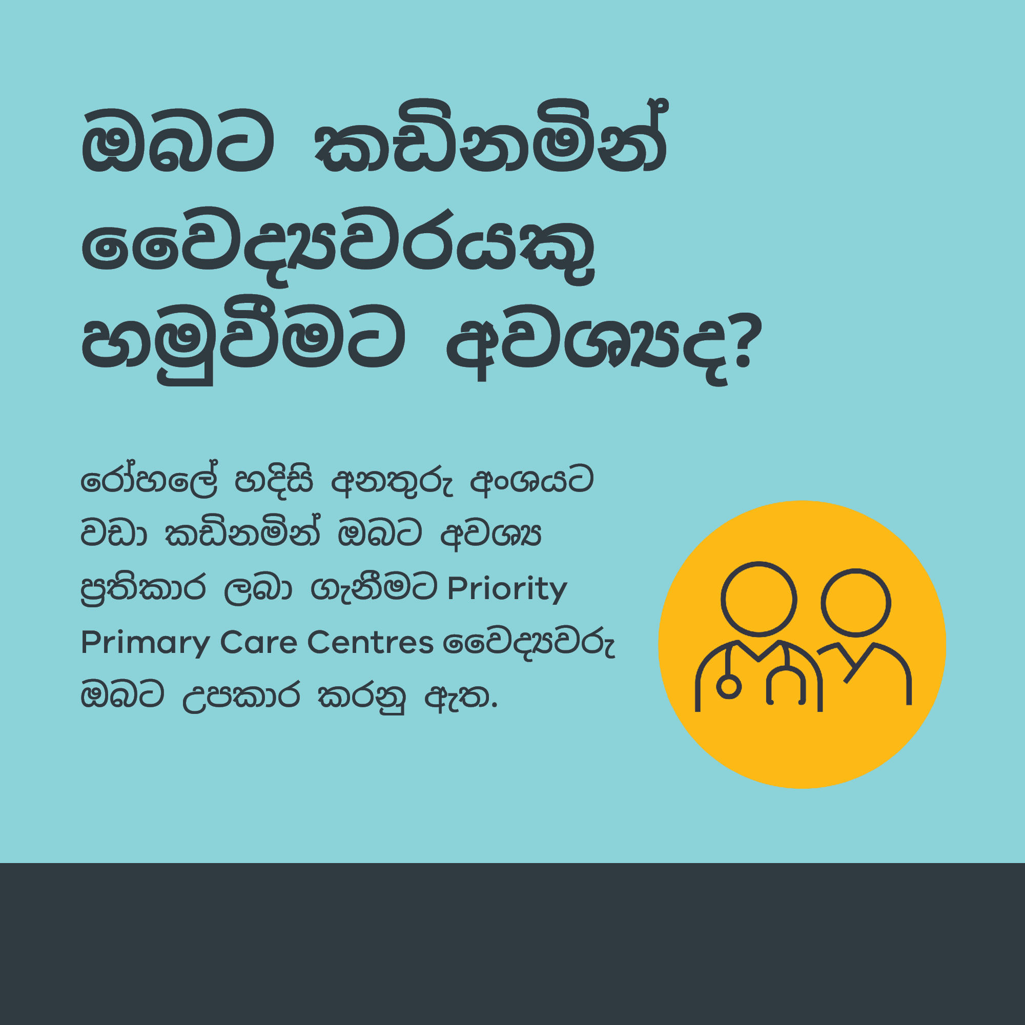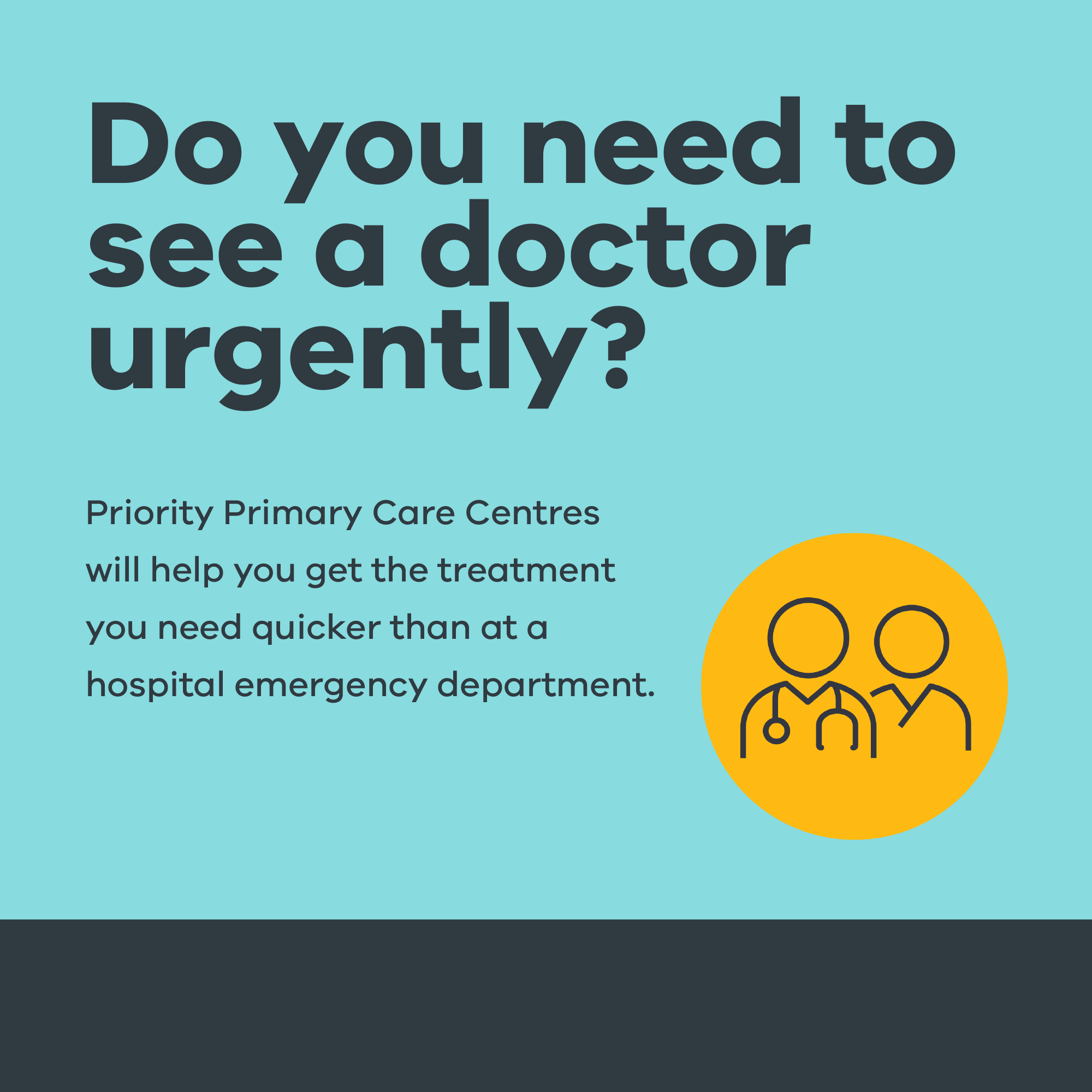 Our priority primary care centres (PPCCs) are supporting local hospitals by providing same-day GP appointments for patients with an urgent but non-life-threatening injury or illness.